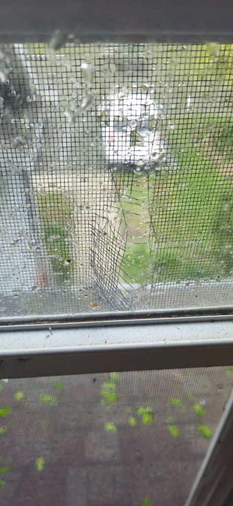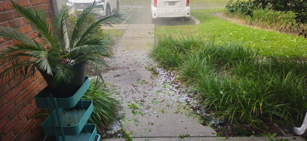 On Friday March 11th 2025 there was a huge hail storm that hit are apartment in Gainesville, Florida. The only damage was to a screen in a window where an ice cube shot through the screen. Below are some pictures from the storm.