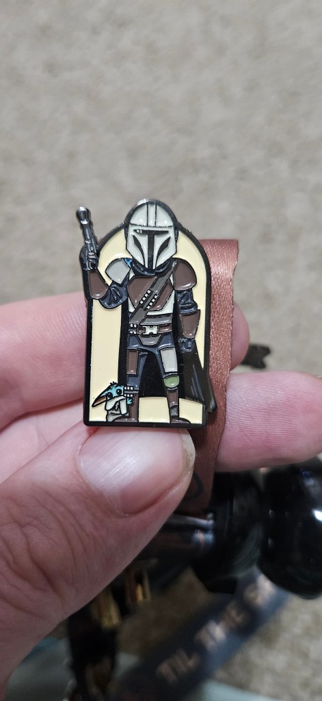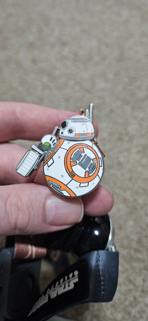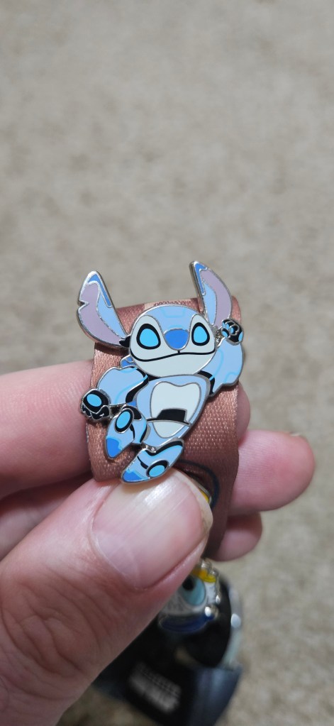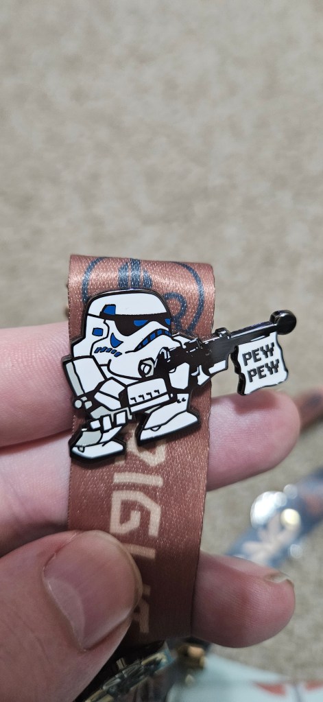 These are all my Disney pins that I have bought and collected over the years. Everyone seems to like the stitch one but my favorite is the storm trooper with saying PEW PEW, bahahaha!